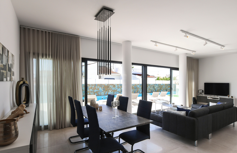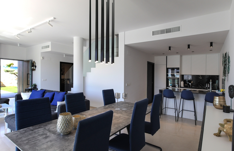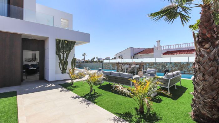 Nous sommes heureux de pouvoir vous proposer cette propriété ultra-moderne luxueusement meublée, située dans la ville de Ciudad Quesada. La Villa de 150 m2, elle bénéficie de 2 chambres avec lit double, une chambre master avec lit double, dressing et salle de bain. Au total la villa possède 4 salles de bains complète et a une capacité pour 6 personnes.  Une pièce à l’étage et dévolu au travail avec bureau, imprimante et tous les équipements nécessaires.
