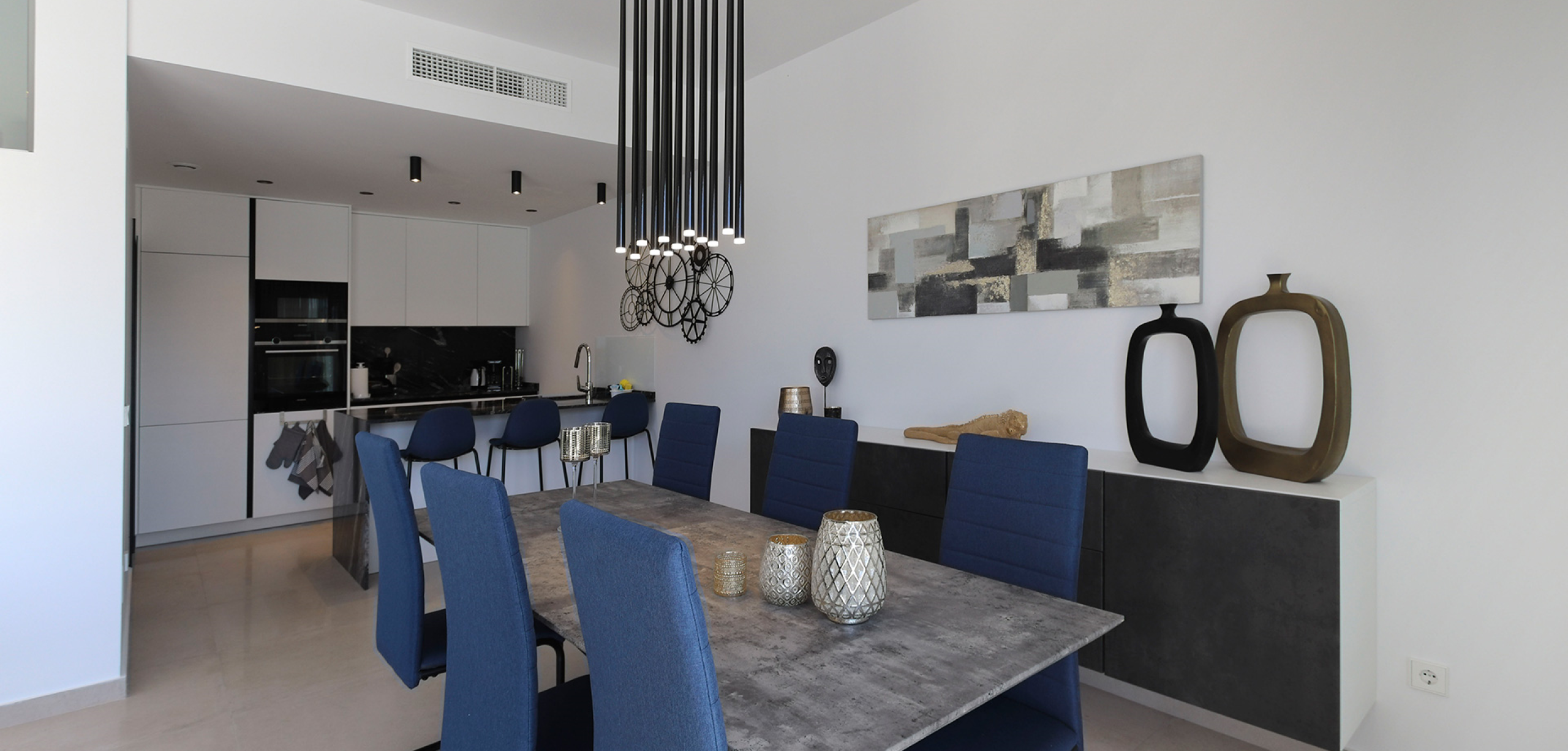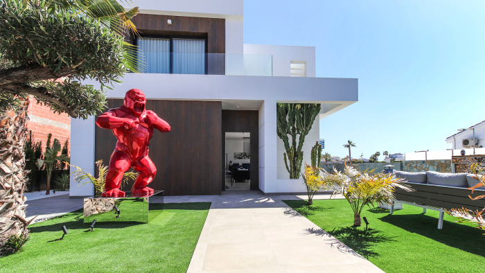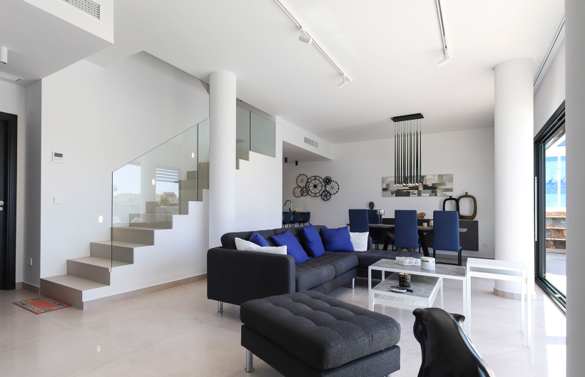 Nous sommes heureux de pouvoir vous proposer cette propriété ultra-moderne luxueusement meublée, située dans la ville de Ciudad Quesada. La Villa de 150 m2, elle bénéficie de 2 chambres avec lit double, une chambre master avec lit double, dressing et salle de bain. Au total la villa possède 4 salles de bains complète et a une capacité pour 6 personnes. Une pièce à l’étage et dévolu au travail avec bureau, imprimante et tous les équipements nécessaires.